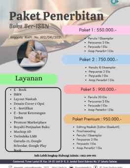 Rp 59.500Paket Penerbitan Buku Cetak – Mulai dari 550 ribuan Buat karya Anda terbit dengan mudah dan profesional melalui paket penerbitan lengkap dari kami. Pilih paket sesuai kebutuhan Anda dan nikmati berbagai fitur unggulan untuk menerbitkan buku Anda!